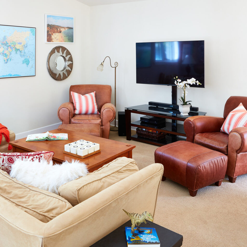 Moves in a family with everything they need: furniture, kitchen and cleaning kits, bathroom essentials, and bedding.